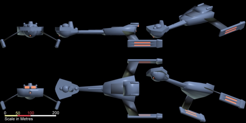 After the end of the Four Years War, most of the facilities set up to produce these research cruisers were converted over to warship designs, accounting for the small number produced. The D-9, named “Seeker” from the Klingon “z’gal”, is manufactured at Gnuu Re, with production at three per year. These vessels are still operating in the spinward areas. Of the 82 D-9’s built, 68 remain in active service, 9 have been destroyed, 3 are listed as missing, and 2 have been sold to private interests in the Triangle.