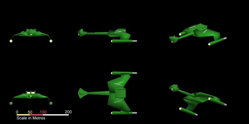 Although 172 of these ships have entered Romulan service, they are not liked by their commanders or crews, many of whom consider them to be enemy vessels. In recent years, the Romulans have begun deploying many of the approximately 160 remaining in active service along the Klingon borders in direct violation of the signed accords. The class is named for thevas’kalabam (bird of storms), a small, flying predator of Remus. These nocturnal avians are often seen gliding on the rising winds before a storm and it is said they are capable of traveling hundreds of miles in the vanguard of a storm.